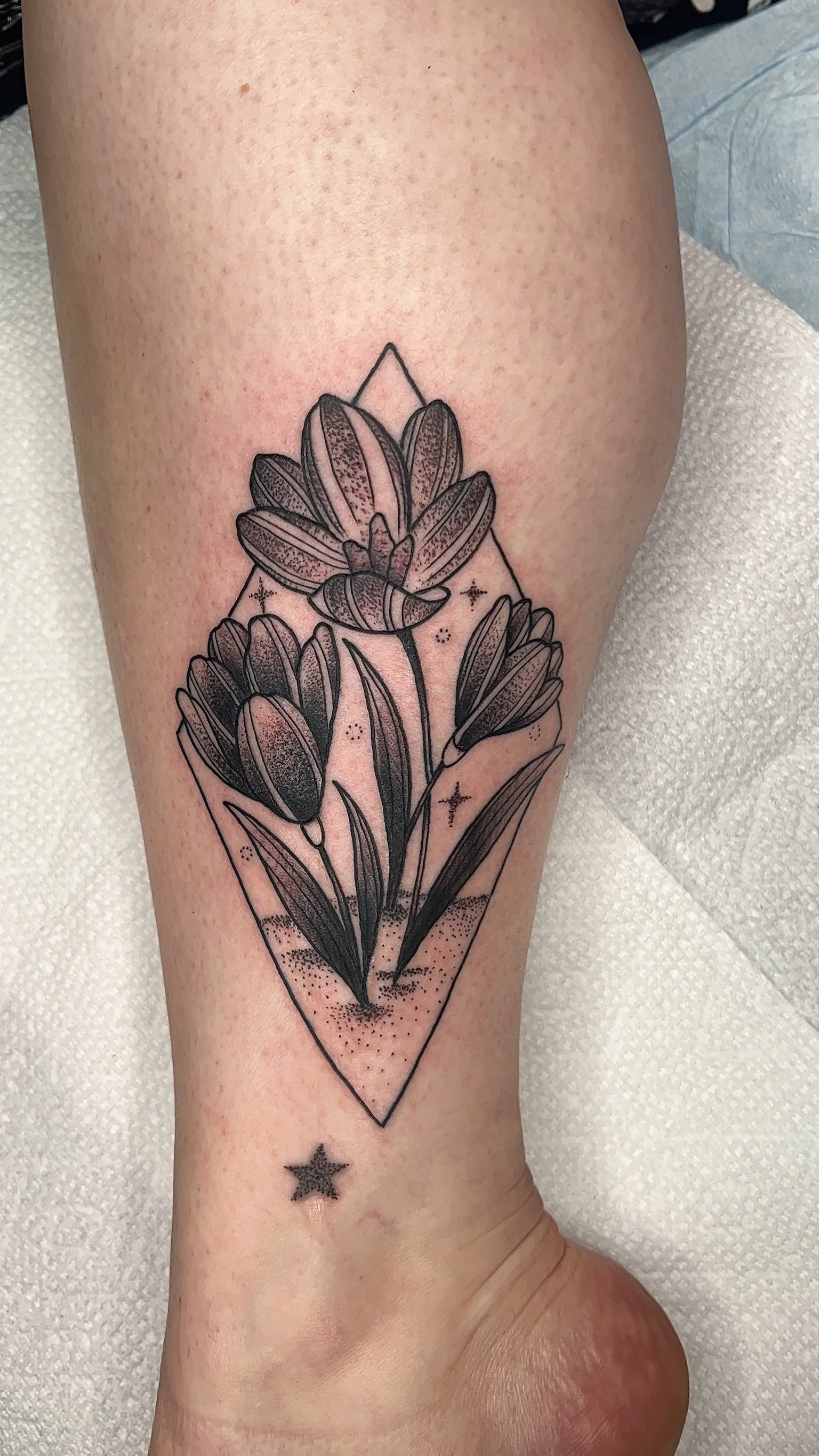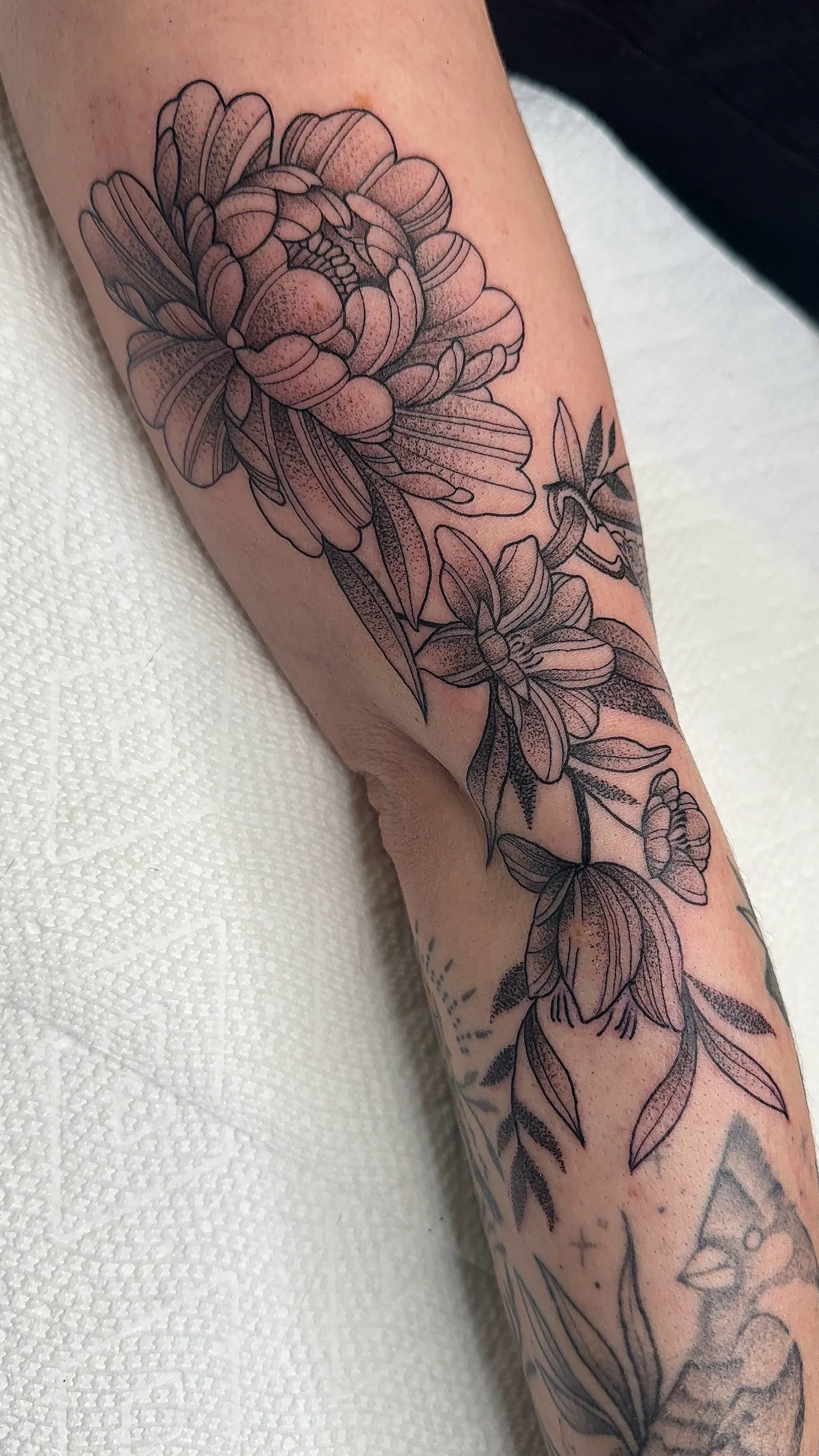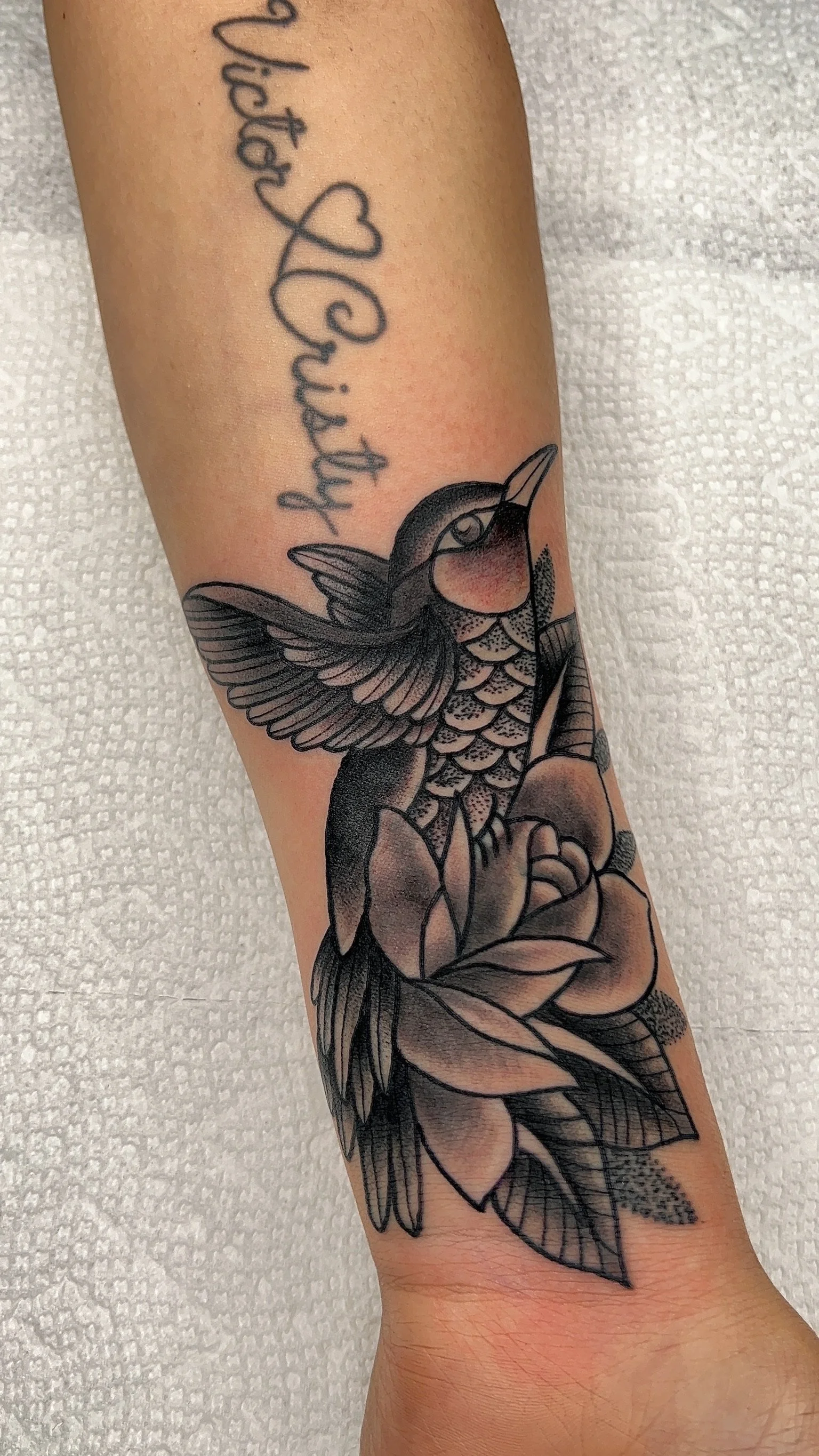 Born and raised in Borikén, Puerto Rico, Paloma Yglesias Soto began her tattooing journey in 2012 with an apprenticeship in Jersey City. By 2014, she was tattooing professionally, channeling her deep cultural roots and reverence for the natural world into every piece. Her style blends traditional American tattooing with stippling, florals, and sacred elements inspired by plants, animals, Caribbean lore, Latin American folklore, and ceremonial practices.